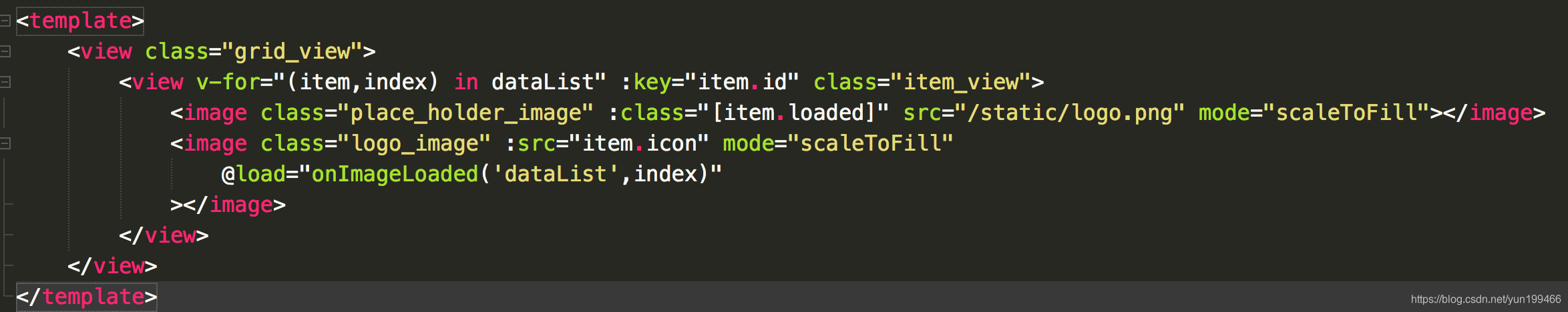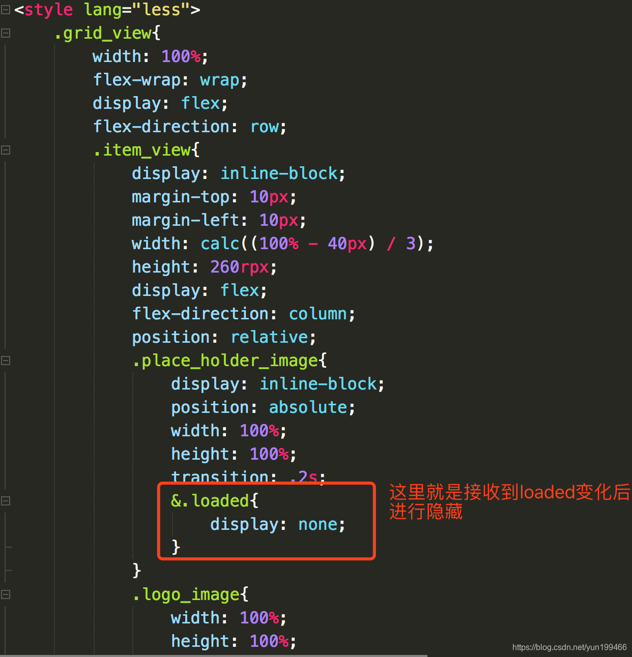 这种方法和第二种方法就是对换了一下思路,默认显示了全部占位图,等待监听图片加载成功,然后把image占位图标签进行隐藏。