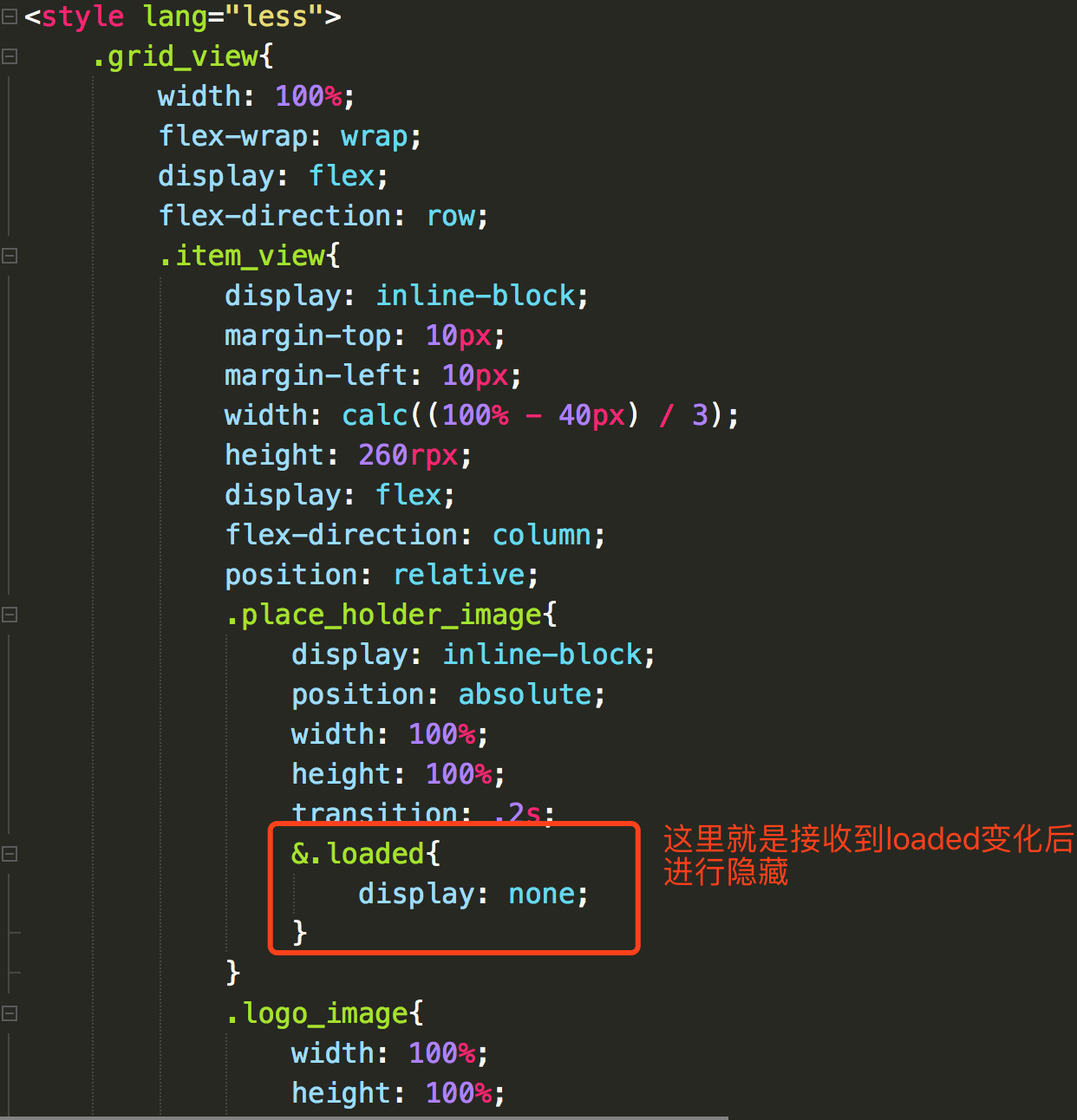 这种方法和第二种方法就是对换了一下思路,默认显示了全部占位图,等待监听图片加载成功,然后把image占位图标签进行隐藏。